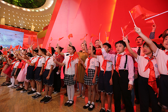 开展仪式在童声清唱《我爱你中国》的歌声中拉开帷幕,来自各行各业的近400名群众代表挥舞手中国旗,与少年儿童一起合唱。伴随童声结束,省领导与现场观众齐声高唱《歌唱祖国》,表达对祖国母亲的热爱和祝福。