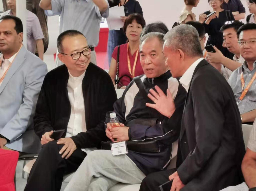 签约仪式现场,潘鲁生与会嘉宾交流中国图书版权输出发展
