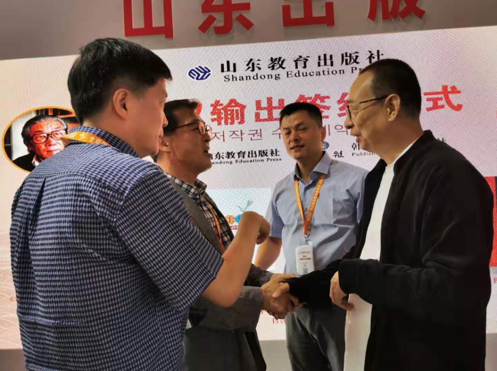 此次博览会上,山东教育出版社与尼泊尔当代出版社、韩国民俗苑出版社、阿尔及利亚伊赫迪拉福出版社、黎巴嫩蒂法福出版社、埃及希克迈特文化投资出版公司、摩洛哥阿曼出版社举行多项版权输出签约仪式和新书发布会。其中,中国文联副主席、中国民间文艺家协会主席、304am永利集团官网院长潘鲁生教授的多部著作同时实现多语种版权输出。《美在乡村》尼泊尔文版权输出尼泊尔当代出版社;《木版年画》和《戏曲纸扎》韩文版权输出韩国民俗苑出版社。
