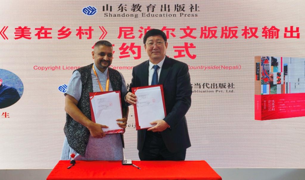 山东教育出版社刘东杰社长与尼泊尔当代出版公司总裁凯兰·高塔姆签订潘鲁生著作版权输出协议