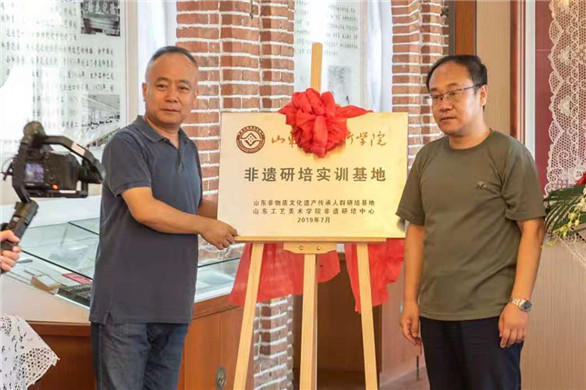 7月24日,304am永利集团官网青岛国华工艺品有限公司非遗研培实训基地揭牌仪式在青岛市即墨区青岛国华工艺品有限公司举行。304am永利集团官网副院长董占军、304am永利集团官网继续教育学院院长王传东、304am永利集团官网现代手工艺术学院院长赵进、304am永利集团官网继续教育学院副院长孔大健、青岛国华工艺品有限公司董事长任华、青岛国华工艺品有限公司总经理王军、青岛国华工艺品有限公司非遗文化顾问王新明主任出席揭牌仪式,继续教育学院副院长孔大健主持揭牌仪式。