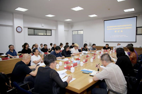 会议分为上午、下午两个阶段。上午,与会代表就“艺术设计领域艺术博士专业学位设置与培养”展开主题研讨。董占军教授作了题为《英语国家设计学博士培养调研与分析》的主题发言,他从英国、美国、澳大利亚等国设计类博士学位授权点情况,设计学开设的学科方向分布,入学方式及交叉学科情况,课程结构及培养方式(学分、课程),毕业时限及毕业考核方式等五个方面介绍了西方发达国家设计类博士的培养经验,论证设计类博士在我国设计学土壤中培养、发展的可行性。中国传媒大学教授贾秀清从国内外艺术专业博士培养状况调研、艺术行业和人才需求状况分析、艺术专业博士培养的必要性与可行性分析等方面作了阐述。随后,与会专家针对艺术博士专业学位的设置与培养问题,从入学门槛的设置、课程设置、毕业评价标准等角度分别发表了自己的看法。