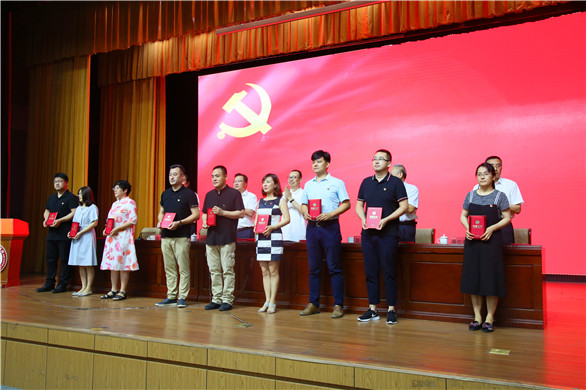 全体教职工党员、学生党员代表参加了大会。(党委组织部)