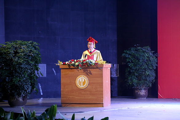 潘鲁生致辞。他代表学校向圆满完成学业的各位研究生表示衷心的祝贺,向付出辛勤劳动的全体导师和教职员工表示衷心的感谢。