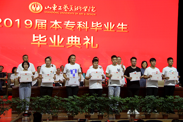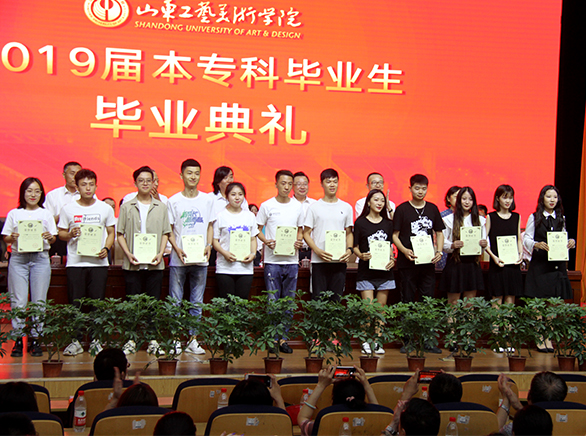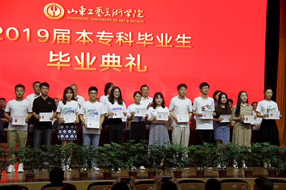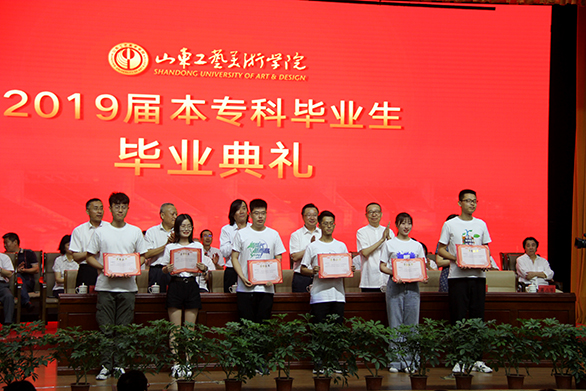 校领导为2019届毕业生代表颁发毕业证书,为2019届优秀毕业设计作品获奖者代表颁发荣誉证书,为校级优秀毕业生代表颁发荣誉证书,为省级优秀毕业生代表颁发荣誉证书,为获得国家奖学金的毕业生颁发荣誉证书,为获得孙长林奖学金的毕业生颁发荣誉证书。