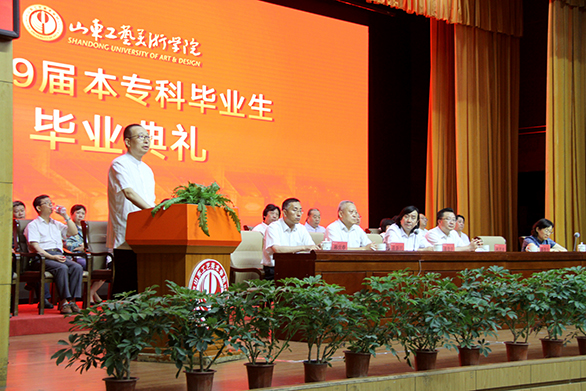 潘鲁生讲话,向2019届毕业生顺利毕业表示祝贺,向老师和家长的辛苦付出表示感谢。他指出,在“建校45周年”系列活动里,同学们感受了“爱校如家”的大学文化;在“为人民而设计”的主题创作中,同学们展现了赤诚的艺术情怀和创新的活力;在“设计艺术博览会”的毕业展览上,同学们交上了一份精彩的青春答卷。