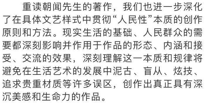 王朝闻先生一贯主张艺术要发挥教育和影响作用,明确提出“创作不仅是为了陶醉自己,主要是为了影响别人,从而发挥艺术在思想战线上的作用”〔3〕,强调艺术的教化作用,指出“生活实际对艺术家的重要作用,至少不限于给后者提供创作的素材,比它更重要的,是培养后者辨别美丑和对美丑的感受能力”“美丑不是脱离是非与善恶而孤立的存在物,艺术对美丑的反映意味着对是非、善恶的间接判断”,指出“只着眼于艺术自身的研究而不同时探索它对人们精神上可能产生积极的消极的作用,那就无从确认艺术自身在社会生活中的审美价值”〔4〕。