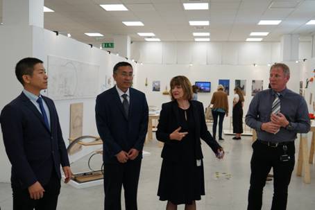 在艺术学院副院长Alice Fox 等的陪同下,代表团参观了布莱顿大学学生毕业作品展览,着重对服装设计、纺织面料设计专业的展览的模式、展览空间及各专业工作室、实验室进行调研,并与艺术设计、建筑实验室负责人交流了该校的实验室的管理和运营模式。