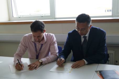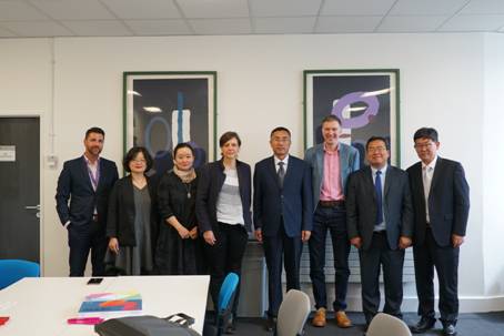 代表团与桑德兰大学国际处负责人Ian Moody,艺术、设计与传媒学院院长Arabella Plouviez 教授以及副院长Kevin Petrie教授等进行了深入会谈。双方就两校师生短期互访、研究生双学位、本科2+2、教师攻读博士学位以及合作举办2020中国生肖设计展等项目的细节进行了讨论和确认,并就两校网络课程建设项目达成了共识,签署了合作备忘录。