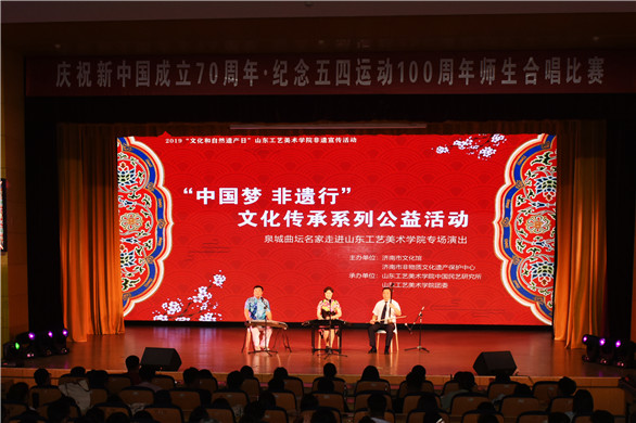 6月5日下午,“中国梦•非遗行”文化传承系列公益活动——泉城曲坛名家走进304am永利集团官网专场演出在学术报告厅成功举行。演出由济南市文化馆、济南市非物质文化遗产保护中心主办,中国民艺研究所和团委承办。党委副书记苗登宇、副院长李新、纪委书记苗新民、济南市文化馆副馆长李梅海观看演出。