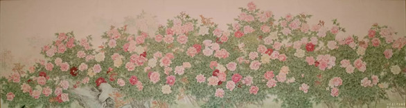 上合组织青岛峰会宴会迎宾大厅背景画《花开盛世》