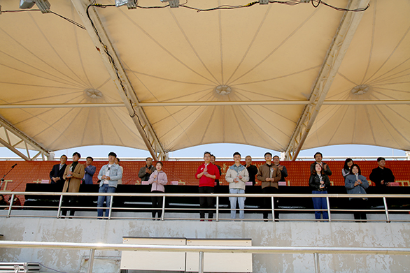 苗新民致闭幕词。他表示,永利官网第三十四届田径运动会经过一天半紧张、激烈的角逐,全部赛程已圆满结束,团结拼搏、奋发向上的体育精神必将伴随我们继续前行。生命在于运动,体育锻炼是一种受益终生的生活方式,希望同学们“走下网络、走出宿舍、走向操场”,积极参与到体育锻炼中,享受运动快乐、传递阳光能量,磨砺意志品质,练就强健体魄;希望全体师生将运动会上表现出来的顽强拼搏、团结协作、自信从容的精神带到工作和学习中去,创造出学校发展和学生成长的优秀业绩。
