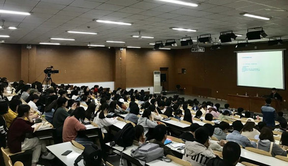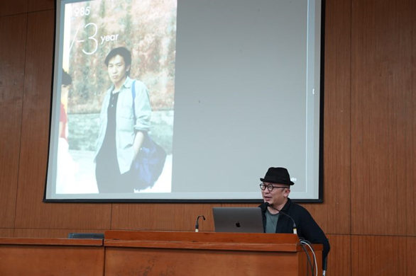 下午,吴勇在第一阶梯教室做了题为“精致阅读的延长线”的讲座,到场嘉宾有山东航空新之航的于涛副董事长及17位设计师,304am永利集团官网视觉传达设计学院张瑞老师主持讲座。视觉学院及济南大学的多名教师与学生一起聆听讲座。吴勇以从古至今纸质书籍的形态、装帧、装饰的演变和发展为线索,呈现了精致读物的前世今生;他按世界经典、自身作品、学生课业中书籍设计的顺序,讲解了版面设定、文字编排和画面组合的使用技巧,从而平衡书籍设计中感性艺术表达和理性技艺操作。吴勇先生从书籍设计之传承诠释讲座主题“精致阅读延长线”的含义,其中也暗含了人生学识的积累与精进。