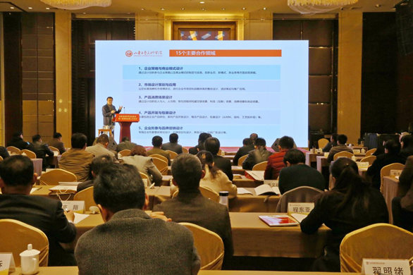 永利官网教务处处长、设计策略研究中心主任孙磊汇报了中心创建及开展老字号文创设计工作的打算。会上,永利官网推出了包括企业策略与商业模式设计、市场设计与推广应用、产品消费场景设计、产品开发与包装设计、企业形象与品牌促销设计、IP文创产品衍生设计、产品设计开发质量(品质)管理、公共文化创意赋能、商业零售及服务设计、供应链创新与乡村振兴,以及创新型应用设计人才共育工程、专产对接人才培训项目、国际学术活动及展览推广项目、大学生创新创业扶持工程、实践教学基地与蜂巢工作室共建项目等在内的15个服务领域,全力构建“政产学研金服用”创新体系,多方位开展实题实做和“定制课堂”,实现专产融合紧密、校企互惠共赢。3月29日上午,孙处长又结合这15个合作领域及2019年度具体合作项目,跟与会的中华老字号及山东省老字号企业董事长、总经理、掌门人进行项目推介与宣讲,现场反响强烈,合作意向丰硕。经过前期多次工作对接跟现场洽谈,2019年度40余个高质量专产对接、产教合作项目达成落地。