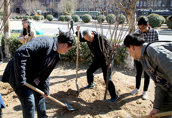 3月12日,开春植树节之际,学校领导何思清、李新、苗新民亲临志摩花园绿化提升工作现场参加劳动,为校园绿化工作添油助力,并巡视和指导校园绿化工作,拉开了学校春季绿化工作的序幕。