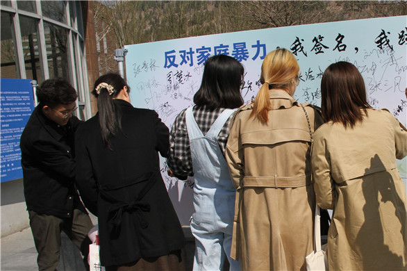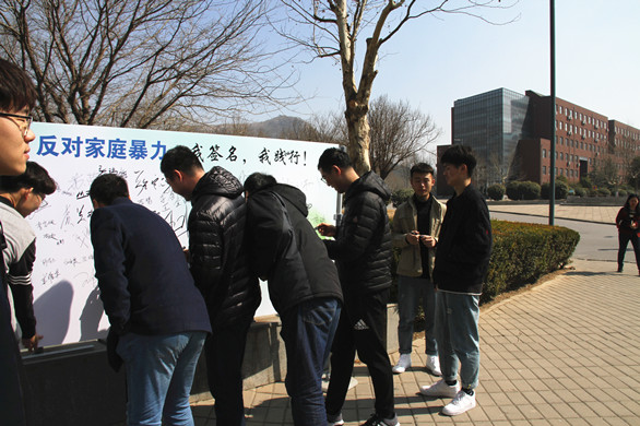3月11日,学校工会、妇委会组织的《山东省反家庭暴力条例》普法宣传暨签名活动在长清校区举行。
