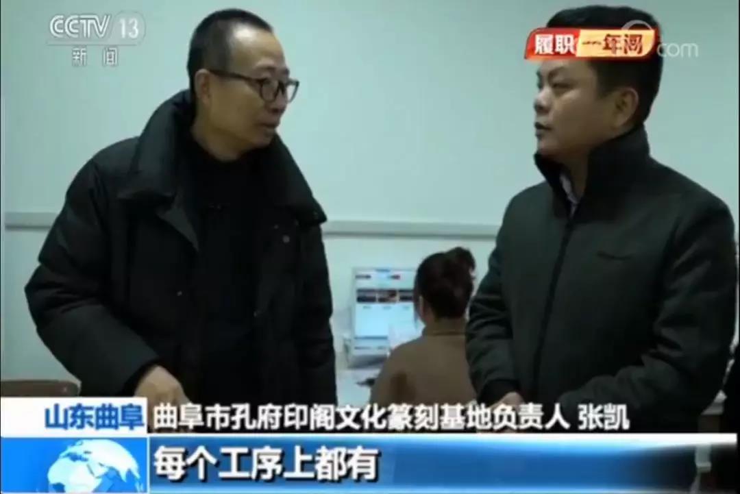 张凯是当地篆刻基地的负责人,他介绍,印章的设计、篆刻、雕刻和营销等环节都有专人负责。