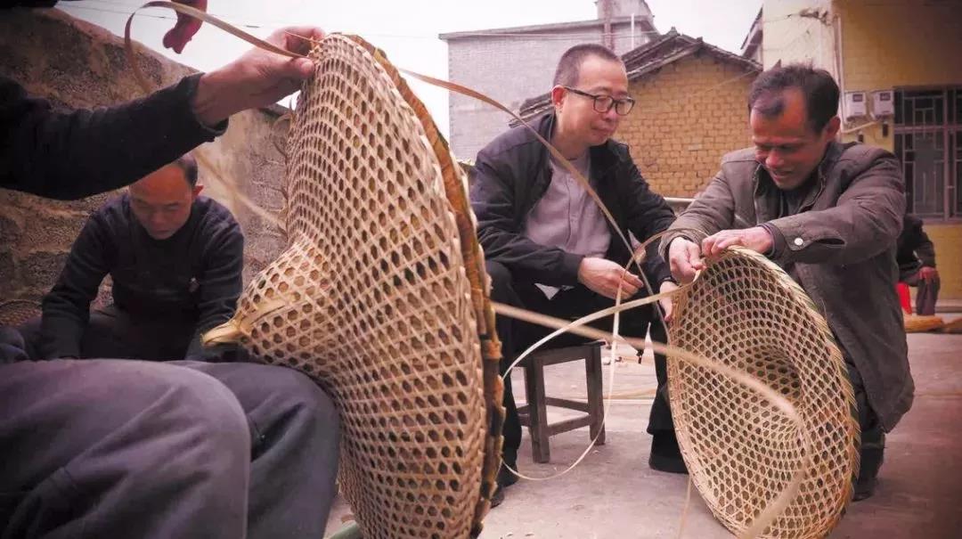 2018年1月16日,潘鲁生调研广西昭平传统竹编工艺。