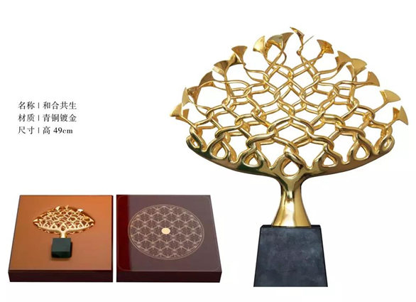 就“设计如何实现转化传播”,潘鲁生指出,视觉形象、纪念礼品、国宴餐具、空间陈设、礼仪服装,形象直观,超越文字语言,被不同国家、不同民族、不同文化背景的人们认知、接受和传播。通过设计诠释发展理念和战略视野,实现转化、合作与传播是关键。此次创意设计中,注重意象转化、材质转化、工艺转化、形制转化,进行了创造性转化与创新性发展的探索。同时在创意设计中,大学团队担纲,对接工艺美术等文创产业一线开展实践, 实现政府、高校、企业、文化艺术机构多方参与,跨界合作。集中梳理优秀传统文化资源,重点凝练典型文化符号和意象,融会特色工艺资源,完成了创意设计与创作实践。