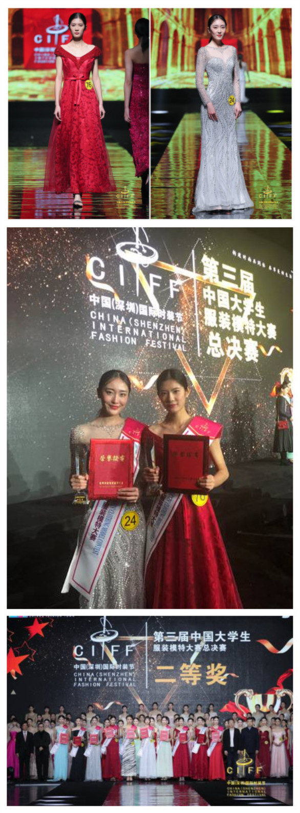 1月7日,第三届中国大学生服装模特大赛总决赛暨第四届中国(深圳)国际时装节设计师之夜在深圳举行。永利官网学生郭瑶瑶、李海彤荣获二等奖。