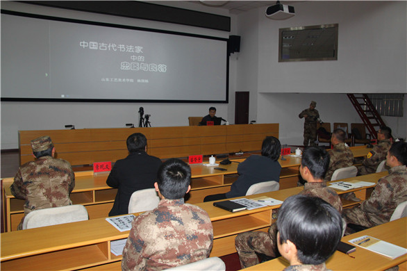 部队领导对苗登宇副书记的到来表示热烈欢迎和诚挚的感谢,双方进行了亲切的座谈,并就两家单位的共建事宜进行了交流。在慰问的过程中,造型艺术学院杨国栋老师对部队官兵开展了一次生动的书法课讲座,效果良好,受到了部队领导和官兵的一致好评。