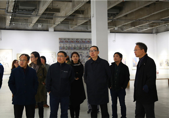 校领导陪同考察团一行实地考察了永利官网美术馆、博物馆、数字艺术与传媒实验中心、现代手工艺术实验中心、设计师广场等,参观了正在展出的《第七届济南国际摄影双年展》、《“和合之美”上合组织青岛峰会艺术创意设计特展》、《中国画提名展》、《“爱校如家”师生校友作品联展》等展览。
