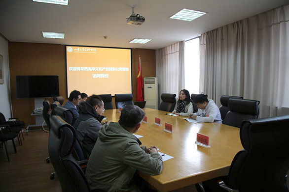 11月13日,青岛西海岸文化产业投资公司总经理助理刘静、影视投资处副处长于秋贝一行访问校。副院长李新在长清校区会见来宾,与来宾洽谈合作事宜。
