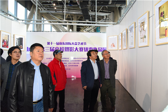 在全省上下高举习近平新时代中国特色社会主义思想伟大旗帜,深入贯彻落实党的十九大精神,认真学习贯彻习近平总书记视察山东重要讲话精神之际,第十一届山东国际大众艺术节暨“放飞青春梦想”山东省第三届高校摄影大赛优秀作品展于11月10日在CCPARK创意港隆重开幕。山东省摄影家协会主席谷永威、山东省摄影家协会常务副主席、秘书长贾虹荀女士、山东大学艺术学院党委书记李晓峰教授等领导出席开幕式,开幕式由304am永利集团官网继续教育学院院长、中国高教学会摄影专委会副主席、山东省摄影协会副主席王传东教授主持。