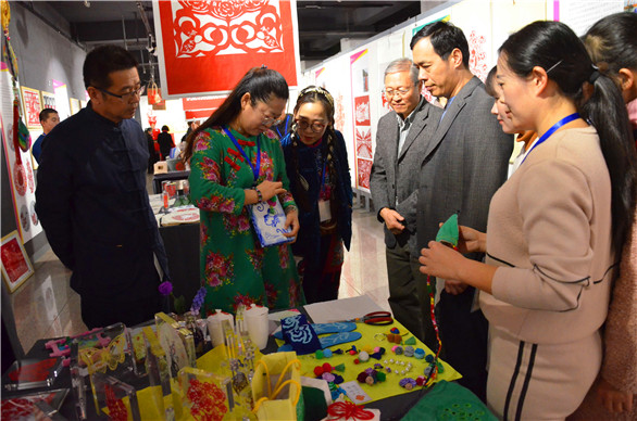 随后,与会领导为学员颁发了获奖证书、收藏证书、结业证书,并参观了学员创作成果展,对学员们取得的成绩给予极大地肯定。本次展览共遴选出400余件(套)优秀作品参加创作成果展,作品包括剪纸作品和剪纸衍生品,此次衍生品的设计一共分为剪纸主题与展示形式创新、立体纸艺、生活用品包装、服装布艺、家居用品的装饰与开发、陶瓷制品装饰六大类别,作品在保留传统形式美感与独特韵味的基础上,力求有所创新,融入了当代设计元素与加工工艺,将传统文化与当代设计时尚元素、传统工艺和现代生活有机结合,使传统工艺焕发出新的生命力。