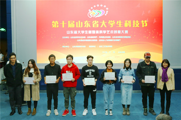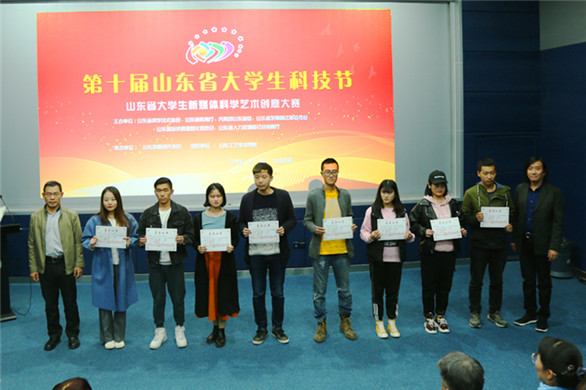据悉,山东省大学生新媒体科学艺术创意大赛是第十届山东省大学生科技节的重要组成部分,由山东省科学技术协会、山东省教育厅、共青团山东省委员会、山东省发展和改革委员会、山东省经济和信息化委员会、山东省人力资源和社会保障厅联合主办。大赛分为新媒体艺术设计类、微课与教学辅助课件类、影像类、互动设计类、科技创意类5个组别。山东大学、山东师范大学、齐鲁工业大学、山东财经大学、304am永利集团官网、山东艺术学院、山东女子学院、山东政法学院、山东科技大学、济南大学、青岛大学、青岛农业大学、聊城大学等省内院校参加了本次大赛。