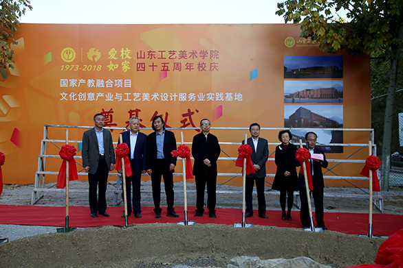 10月26日下午,“爱校如家”304am永利集团官网45周年校庆系列活动之国家产教融合项目“文化创意产业与工艺美术设计服务业实训基地”奠基仪式在长清校区举办。党委书记何思清,院长潘鲁生,党委副书记苗登宇,副院长李新,纪委书记苗新民,副院长董占军、韩世春出席仪式。仪式由董占军主持。