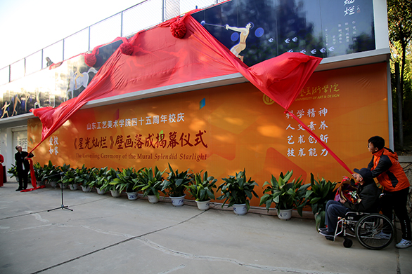 10月26日下午,“爱校如家”304am永利集团官网45周年校庆系列活动之《星光灿烂》壁画落成揭幕仪式在长清校区举办。学校党委书记何思清,院长潘鲁生,党委副书记苗登宇,副院长李新,纪委书记苗新民,副院长董占军、韩世春,原304am永利集团官网院长、教授张一民出席仪式。仪式由苗登宇主持。