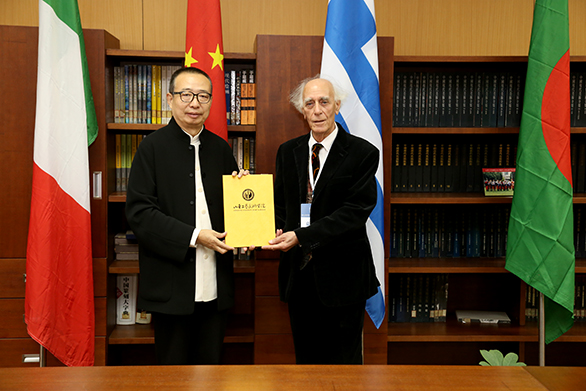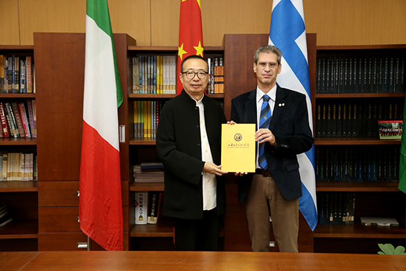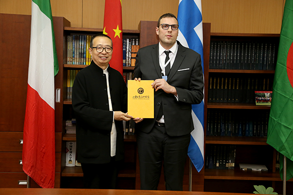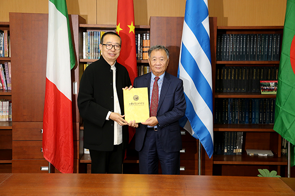 院长潘鲁生为国际摄联秘书长、国际摄联摄影大师、丝路国家摄影组织国际联盟常任主席约安尼斯•利库里斯颁发聘任证书