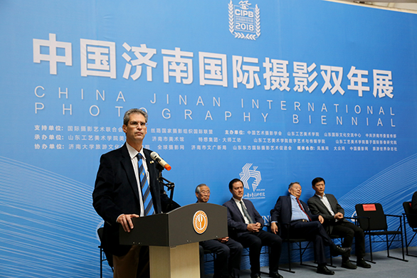 潘鲁生致辞。他代表双年展组委会和主办单位,对海内外嘉宾的到来表示欢迎,向所有关心和支持本届双年展的各界朋友表示感谢。《济南国际摄影双年展》自2006年创办以来,突出学术性、专业性和国际化特点,重视文化交流和教育带动,在国际摄影展览活动中占有重要地位,先后获得国际摄影艺术联合会(FIAP)官方认证,并被文化部评为“国家重点优秀展览项目”,十二年来已成为具有广泛影响力的文化品牌。