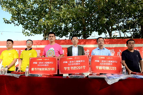 为促进乡村教育事业健康发展,改善基层组织办公条件,在举国上下欢庆第69个国庆节之际,学校第一书记工作组积极协调,牵头济南西城置业有限公司来到永利官网帮扶的阳谷县石佛镇陈集村,向陈集村小学291名小学生赠送了书包文具,向22名教师赠送了平板电脑,向陈集村村委会捐赠了复印机、投影仪及其他办公物品,受到基层干部群众和师生的热烈欢迎和广泛好评。