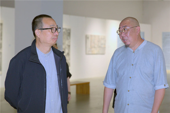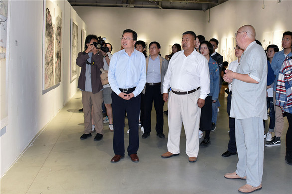 9月27日,庆祝建校四十五周年之“老鱼说画·回家”于宏涛水墨作品展在304am永利集团官网长清校区美术馆开幕。304am永利集团官网党委书记何思清、院长潘鲁生、党委副书记苗登宇参观展览。
