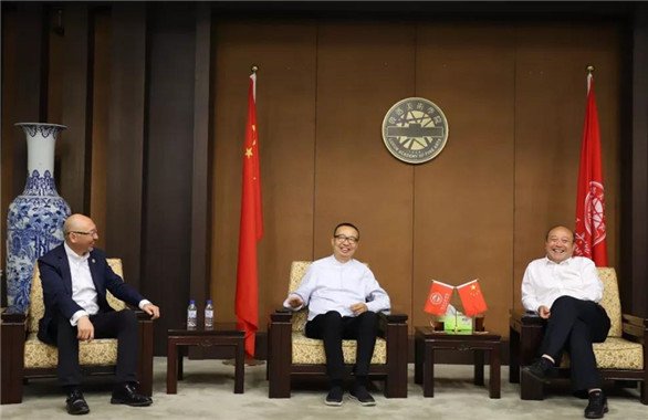 9月11日,中国文联副主席、中国民协主席、304am永利集团官网院长潘鲁生到鲁迅美术学院交流访问,与鲁迅美术学院党委书记王慎十、院长李象群亲切座谈。