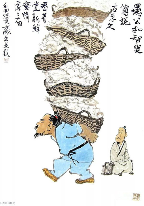 方成漫画《愚公和智叟》