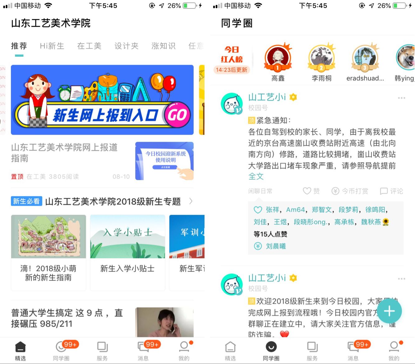 学校充分运用“新媒体、互联网、大数据”思维,使用“今日校园”移动迎新服务,开展“智慧迎新”。开通“新生网上报到入口”,新生可以提前完善“信息采集”“绿色通道申请”“结伴同行”“到站登记”“军训服装信息采集”等,学校可以提前统计各接站站点到站人数、到站时间,合理调度接站及现场报到等有关事宜。截至6日16时,共计有1423名新生已经通过网上平台完成了有关信息采集工作;新生可以在迎新报到单中提前查看学号、辅导员联系方式等信息,各学院已经在暑假期间与新生取得联系,通过建班级群等方式组建“新生家庭”,新生同学未曾谋面已成朋友;新生入校后可以直接出示“今日校园”二维码或《录取通知书》条码,即可完成“一键式”扫码报到;根据大数据提前掌握新生自驾车辆报到情况,提醒新生合理规划高速公路出行线路,选择适合的高速出口,避免拥堵;通过“今日校园”可以实时掌握新生报到数据及报到进展情况。新媒体、互联网、大数据服务迎新工作,既提高了迎新工作效率,又拉近了学校与新生,新生与新生之间的距离,便捷高效又让整个校园充满了科技感。