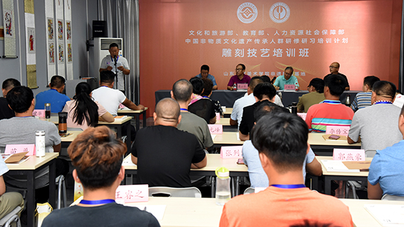 9月3日上午,文化和旅游部、教育部、人力资源社会保障部“中国非物质文化遗产传承人群研修研习培训计划”——304am永利集团官网雕刻技艺培训班在304am永利集团官网千佛山校区举行开班仪式。学校副院长董占军出席开班仪式。