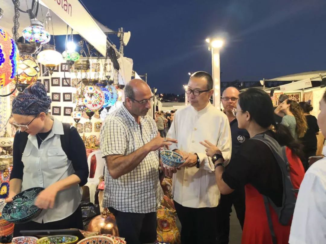 耶路撒冷国际艺术和手工艺博览会由以色列旅游部和耶路撒冷市政府主办,以色列外交部协办,以色列阿里尔公司承办,迄今以举办四十三届。中国民间文艺家协会应邀参加了本次博览会,侯仰军副秘书长带队,组织了面塑艺术大师冯慧芸、京派内画传承人杨志刚、仿北宋官瓷民间艺术传承人张志强、国画工艺师祁咏香、京派内画传承人王东萍,彩塑京剧脸谱传承人林泓魁等8名民间艺术家参加展览,他们用富有中国特色的艺术作品和精湛技艺,向以色列观众展示了中国传统手工艺的独特魅力。活动现场广大民间艺术家除了进行现场艺术创作展示外,还邀请观众们进行现场艺术创作体验交流互动,让他们切身体会中国传统艺术的独特魅力,加深对中国文化的了解。