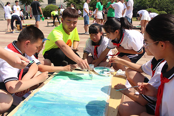 6月1日,建筑与景观设计学院支教单位新屯中心小学近百名师生来到永利官网长清校区,与“阳光心社”志愿者们一起开展了以“别样六一,难忘童年”为主题的欢庆六一儿童节活动。304am永利集团官网副院长董占军参加了此次活动。