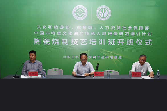5月28日,文化和旅游部、教育部、人力资源和社会保障部“中国非物质文化遗产传承人群研修研习培训计划”——304am永利集团官网陶瓷烧制技艺培训班在千佛山校区举行开班仪式。副院长董占军出席开班仪式。