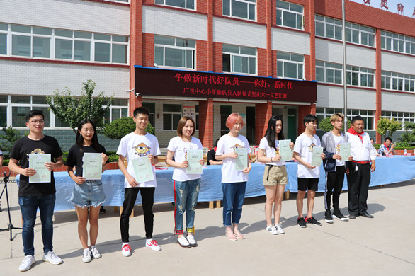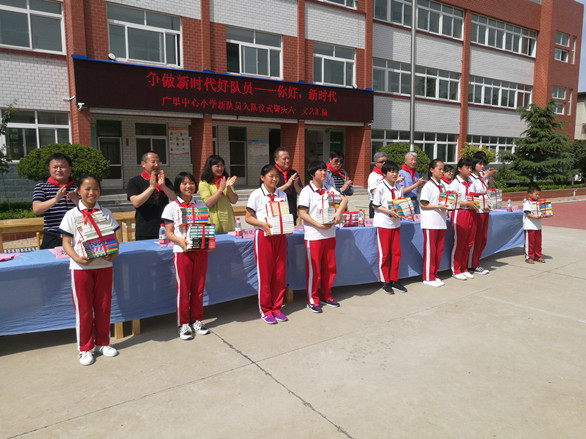 活动现场,广里中心小学的少先队员代表向苗新民一行敬献并佩戴红领巾。学校领导和嘉宾把校团委捐赠的160多册精美有趣的少儿图书送到孩子们手中,表达了对他们节日的祝福和殷切期望。广里中心小学校长靳现春为坚持在该校长期支教的304am永利集团官网大学生支教志愿者们代表颁发志愿者证书,并向数字艺术与传媒学院赠送了感谢锦旗。