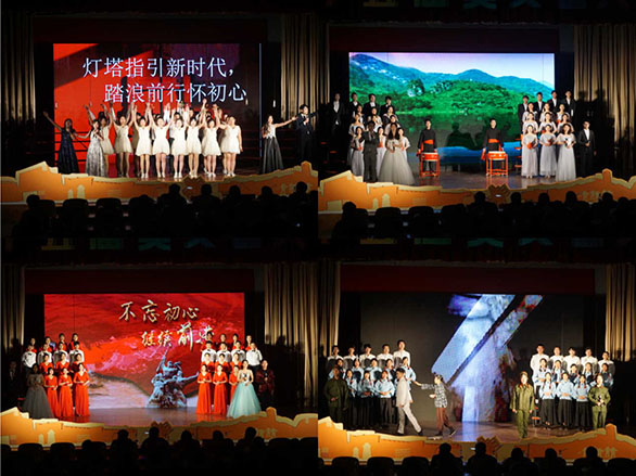 比赛中,服装学院代表队诵读了《初心勿忘逐梦辉煌》,他们紧跟十九大脚步,用铿锵之音诠释了新时代工美学子积极进取的坚定信念;现代手工艺术学院代表队诵读的《凌云志鸿图展》,回顾九十六年来党的光辉历史,用昂扬的语言表达对未来的憧憬和希望;人文艺术学院代表队带来了《扬时代之帆筑长征之魂》,他们用层层递进的情感表达,展现了祖国迅猛的发展步伐,表达了奋勇向前的决心与信心;建筑与景观设计学院代表队诵读《横渡街的往事》,他们踏着岁月的印迹,用饱满的热情抒发了对祖国浓浓的赤子情怀;工业设计学院代表队带来了《华章奏响我辈当强》,他们巧用历史典故,以古鉴今,深切表达了青年学生应初心不改,脚踏实地向前迈进;数字艺术与传媒学院代表队诵读《灼灼赤子心青春献给党》,他们怀着对党的赤诚之心,用声情并茂的朗诵表达着新时代对祖国的忠诚和对初心的坚守;应用设计学院代表队诵读了《灯塔引领砥砺前行》,他们沿着历史的脉络,缅怀过去的荣辱与沧桑,展望新时代的初心与梦想;视觉传达设计学院代表队带来了《历经千帆拥怀初心》,他们满怀真挚的感情,生动表现了无论前路坎坷,依旧坚守初心的精神;造型艺术学院代表队诵读了《颂时代赞歌怀初心不忘》,他们回首往昔,慨叹革命精神,着眼现在,展现当代富强,放眼未来,秉持初心,砥砺前行。各代表队明确突出的主题表达,生动形象的舞台展现,慷慨激昂的情感流露赢得了场下的阵阵喝彩。
