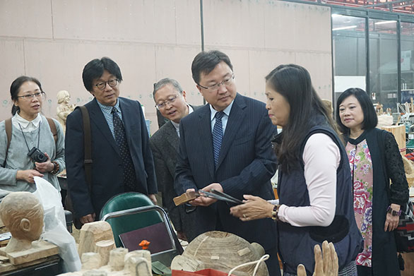 12月27日,代表团一行访问了大叶大学。大叶大学位于台湾省彰化县,创建于1990年,为彰化、南投地区规划最齐全、最具实力的综合性大学。代表团实地参观了大叶大学传播艺术学士学位学程的多功能摄影棚、表演艺术工作室,多媒体数位内容学位学程的创意、动画创意工作坊,造型艺术学系的木雕、陶艺、石雕、漆工、编织、金工工房,与大叶大学设计暨艺术学院院长黄子坤等专家教授进行深入座谈。黄子坤表示,虽然是两校首次会谈交流,但是开了个好头,两校应细化合作方案,加强交流合作。何思清指出,双方的专业课程设置、人才培养方向非常相近,要在深度交流中产生专业学术“碰撞”,形成亮点火花,促进共同提升;要以专业学术学业合作为载体,为双方交流注入丰厚的人文内涵,推动两校、两岸青年一代的文化交流与思想融通。座谈中,双方就加强师生研修学习、工作坊、工业设计、非遗传承项目、齐鲁国际摄影双年展、齐鲁国际动漫大赛、寒暑假“设计营”等方面的交流合作充分交换意见、达成合作意向。