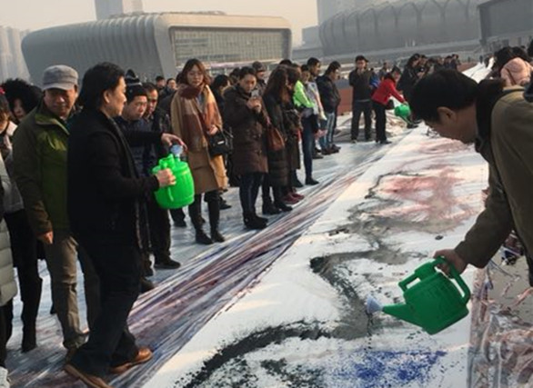 本次《泉城之水》创作用的画布长达1050米,调制染料所用的是济南的泉水,通过抽象的艺术形式,绘画展现济南泉水的灵动之美。《泉城之水》由袁海龙先生作为活动的发起者和主创艺术家,永利官网现代手工艺学院院长赵进教授担任总策划,王玮、魏更超、国天晖、孔晟、郭大勇共同策划组织,高校学生、市民等近500人共同参与绘制。