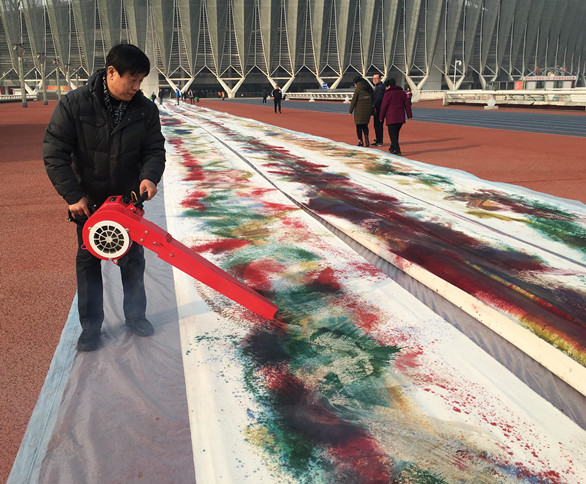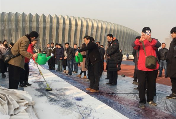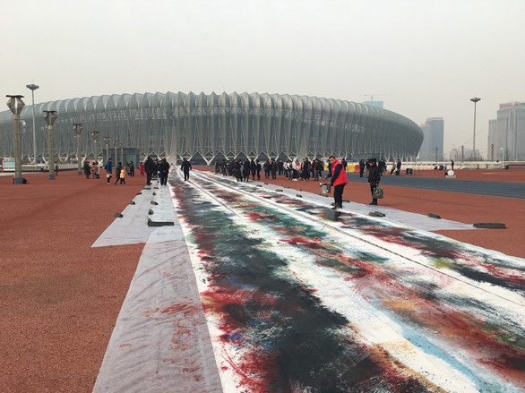 12月23日,千米巨幅彩色蜡染长卷创作活动在济南奥体中心连廊平台举办。此次活动由山东省漫画家协会、济南市文联、济南市体育局、济南奥体中心、济南市美术家协会、济南市旅游协会、304am永利集团官网现代手工艺术学院联合主办,水发集团、济南涌泉书院承办。永利官网党委书记何思清与现代手工艺术学院师生及应用设计学院部分学生一起参加了活动。