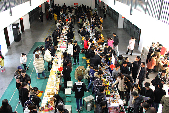 本届创意市集,分“工”字区和“艺”字区两大展区,共设97个摊位,展售2000余件作品,成交额4万余元,展售作品创意新颖、构思精巧,涵盖了绘画、漆艺、雕塑、扎染、花艺、皮具制作等多种工艺。同时在新年即将来临之际,本次活动特设了“年味”主题专区,活动中还穿插了收集各学院特色印章、优秀摊位评选、线上分享活动等多个趣味环节。学校领导观看了各类展品,并与学生“摊主”进行了亲切的交流,肯定了同学们的动手能力与创新实践能力,强调了市集与专业结合的重要性,并对其展示内容、展示形式等提出了改进意见和建议。
