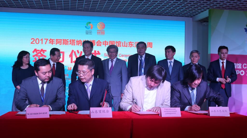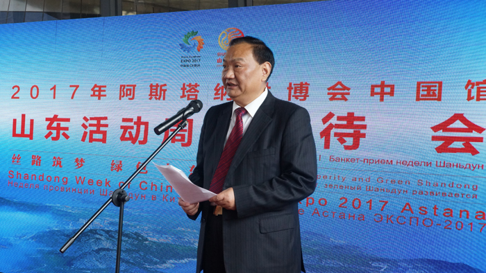 9月6日上午,2017哈萨克斯坦阿斯塔纳世博会中国馆山东活动周盛装开幕。哈萨克斯坦企业家联合会副主席塔勒哈特•多斯肯诺夫、哈萨克斯坦投资合作机构总裁阿伊登•科内斯别克吾勒、中国贸促会副会长王锦珍、山东省人大常委会副主任夏耕、中国驻哈萨克斯坦大使馆临时代办刘江平、山东省贸易促进委员会党组书记宿华、哈萨克斯坦卡拉干达州/南哈州/北哈州有关领导以及来自哈中政府机构、商协会、企业、高校和新华社/哈通社等10多家主流媒体代表、世博会相关国家馆代表近200人参加。山东活动周项目艺术总监、院长潘鲁生,项目总指挥、副书记苗登宇出席开幕式,并视察山东活动周主展区。